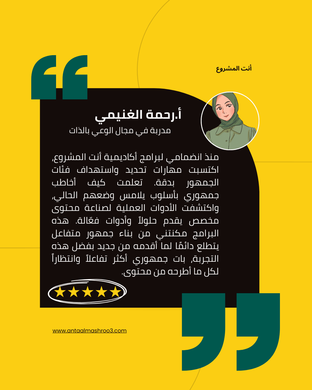 أكاديمية أنت المشروع - كوتش باسمة المشايخية جميع الحقوق محفوظة © 2025